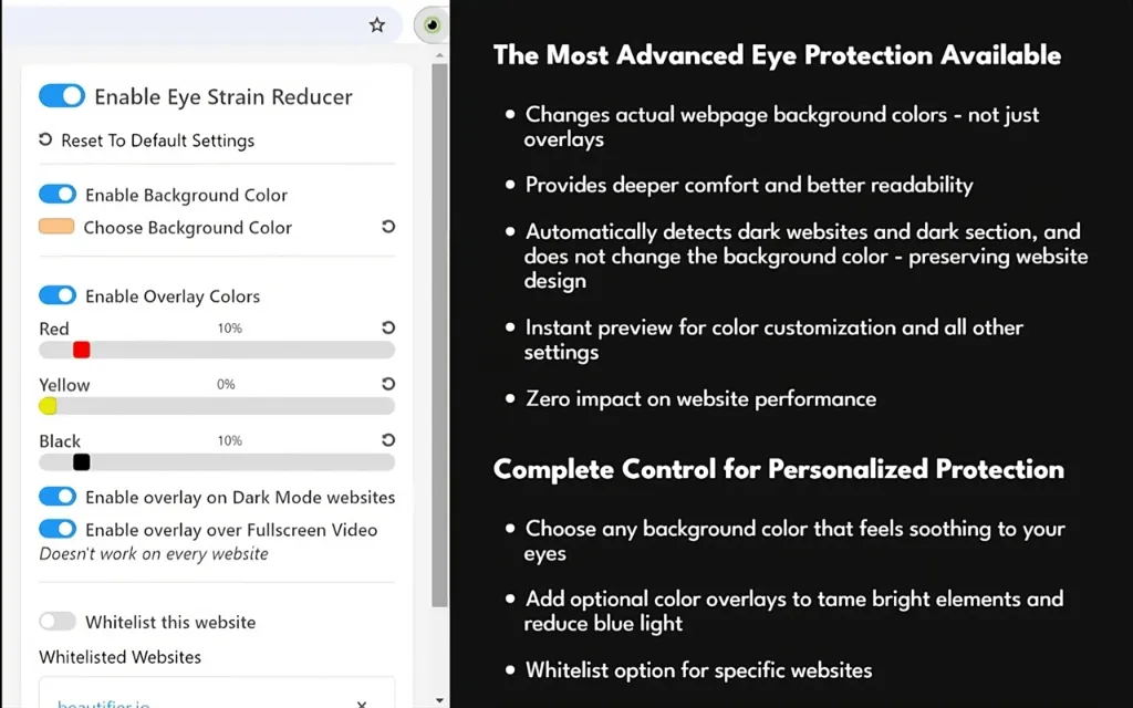 Eye Strain Relief Pro: Smart Background & Overlay Color Control [Browser Extension]