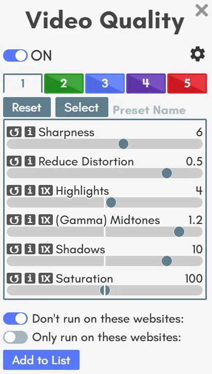 Video Quality Enhancer: Improve Sharpness, Lighting, Gamma and Saturation [Browser Extension]
